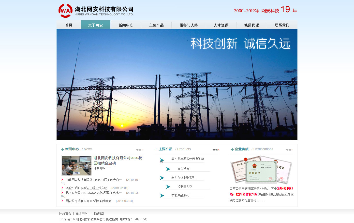 湖北网安科技有限公司位于风景秀丽的湖北省第二大城市黄石市。历经14年的艰苦奋斗,公司现已发展成为一家占地面积90余亩,员工300余人,集高压开关、配电自动化设备研发、生产、销售、服务于一体的输配电自动化设备生产企业,并已形成以北京为销售中心、以武汉光谷为技术研发中心、以黄石为生产基地的现代化企业架构。