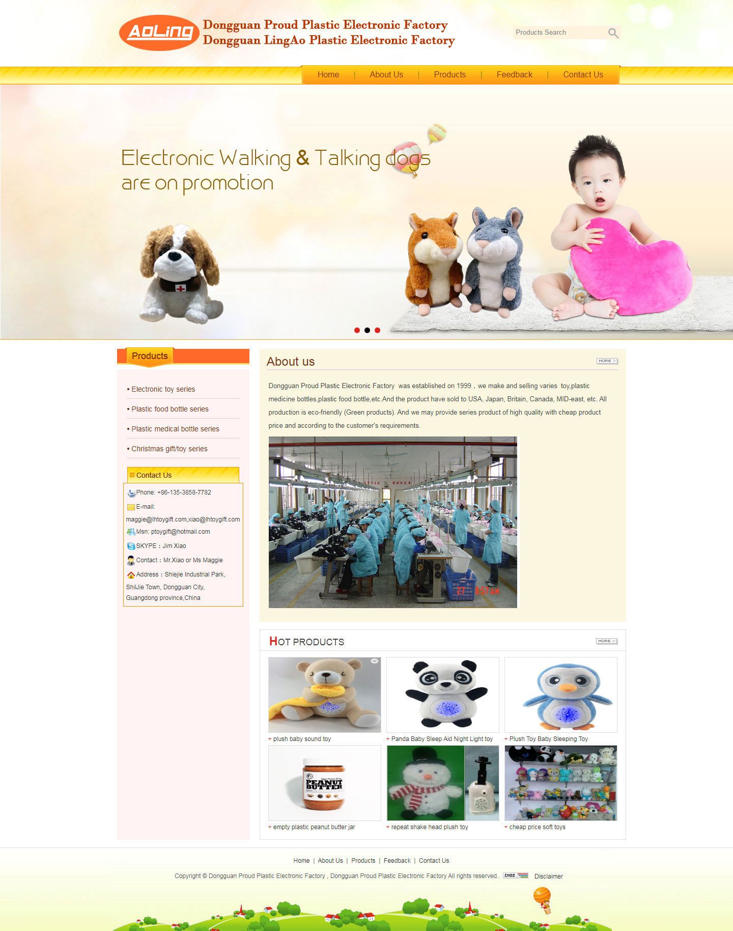 Dongguan Proud Plastic Electronic Factory locate famous manufacture city--Dongguan city, China,we make and selling varies plastic bottles ,speaking toy and electronic plush toy ,party light,Ladies bag,etc.And the product have sold to USA, Japan, Britain, Canada, MID-east, etc.