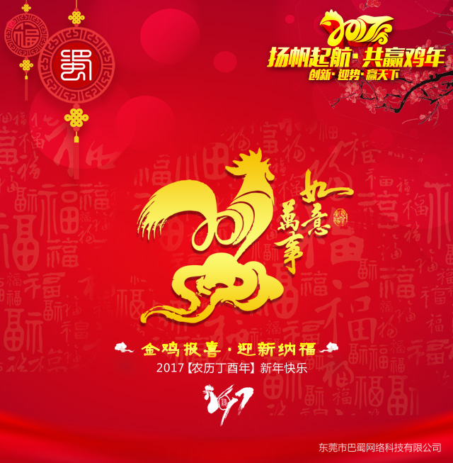 尊敬的客户您好! 2017年春节将至,为使公司和员工共同度过一个欢乐、祥和、平安的新春佳节,现将有关事宜通知如下: 放假时间:2017年1月20号至2月5日(年初九),2月6日(年初十)正常上班。 放假期间如有业务、技术及其他相关业务的需求,请与我公司值班电话联系,在假期间如给您带来不便敬请谅解! 提前祝各位新老客户春节快乐、鸡年吉祥、万事如意! (值班电话:18688605008张生)