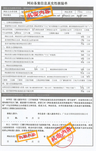 3、网站备案信息真实性核验单(到服务器的接入服务单位获取)