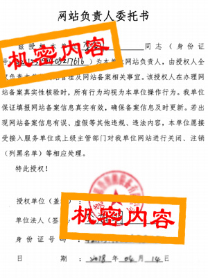 6、网站负责人委托书(若网站负责人不是法人,需要提供此文件)