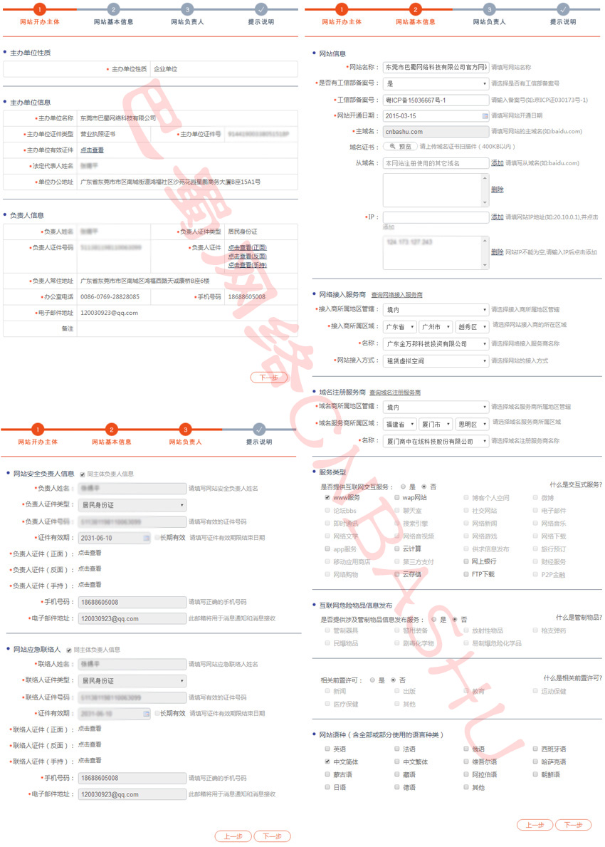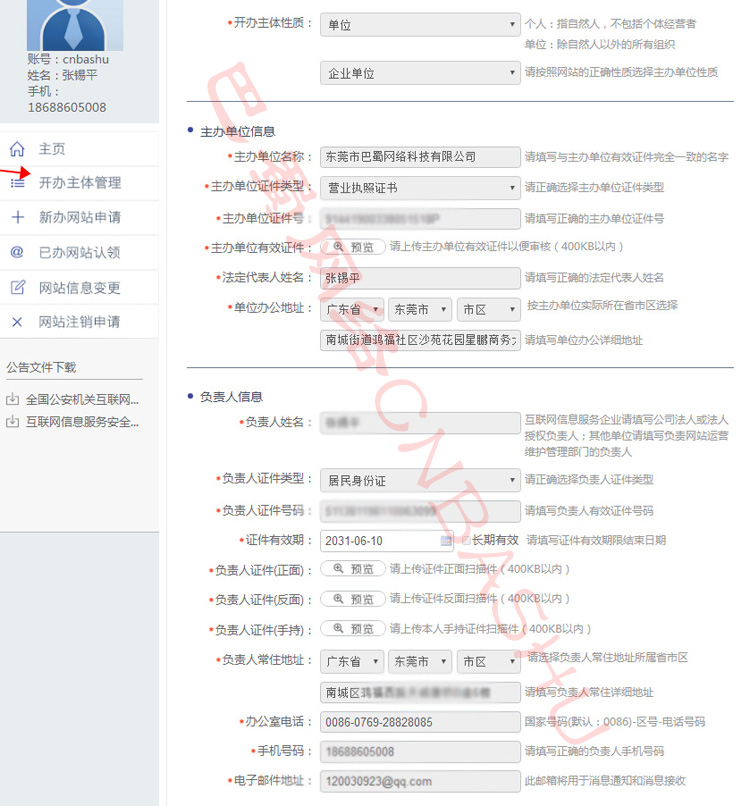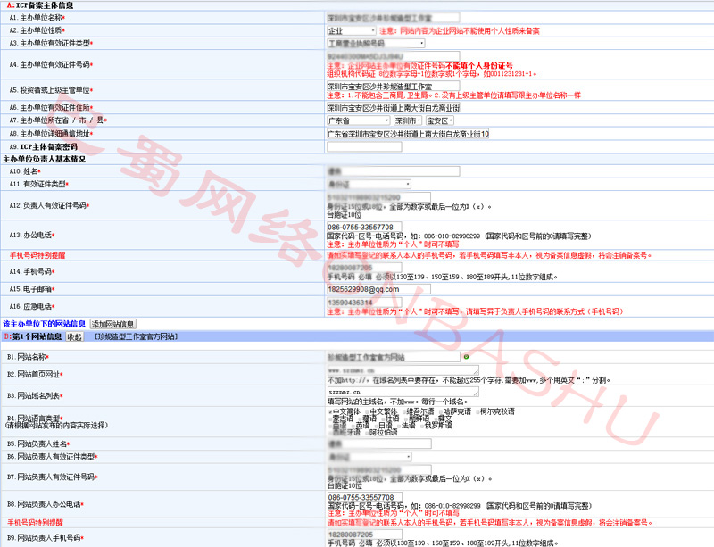 7、同时需要准备:公司真实座机号码、法人和负责人手机号码、以及备案联系手机号码、法人和负责人邮箱地址。