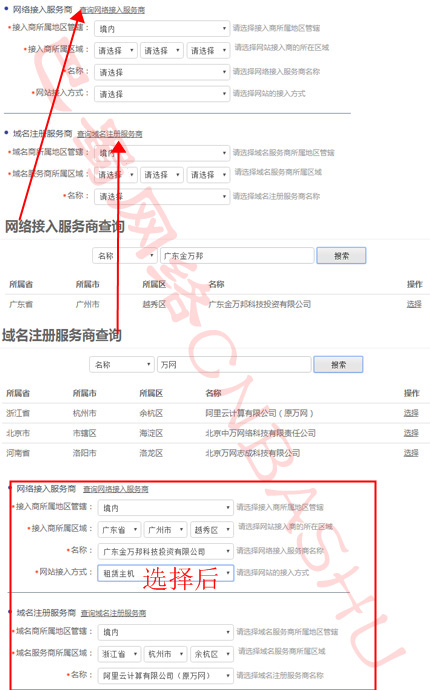 5、需要提供网站IP、网络接入服务商信息(平台拥有查询功能,可通过名称查找)、域名注册服务商信息(平台拥有查询功能,可通过名称查找)